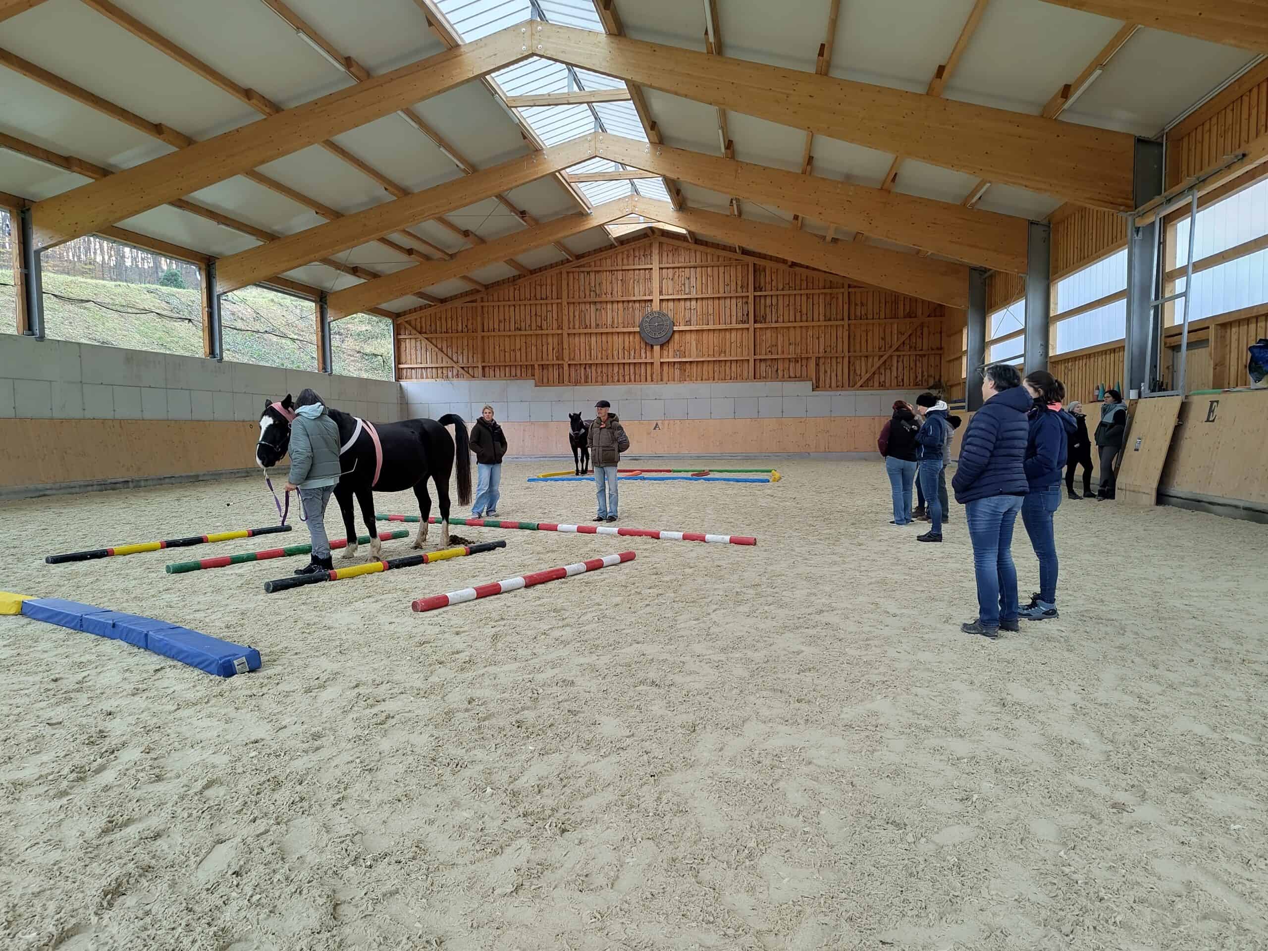 Ein weiterer Schwerpunkt liegt auf Beweglichkeits- und Körperarbeit für das Pferd, um Balance, Koordination und Losgelassenheit zu fördern. Durch gezielte Übungen und achtsames Beobachten lernen wir, Spannungen früh wahrzunehmen und konstruktiv damit umzugehen (insbes. Angst beim Reiten, Angst vorm Ausreiten, Zweifel, Sorge).