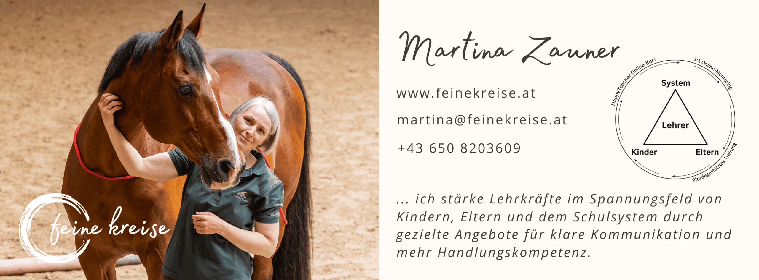 “Ich bin Martina Zauner und begleite Reiterinnen und ihre Pferde dabei, ihre Beziehung und Kommunikation feiner, klarer und vertrauensvoller zu gestalten.